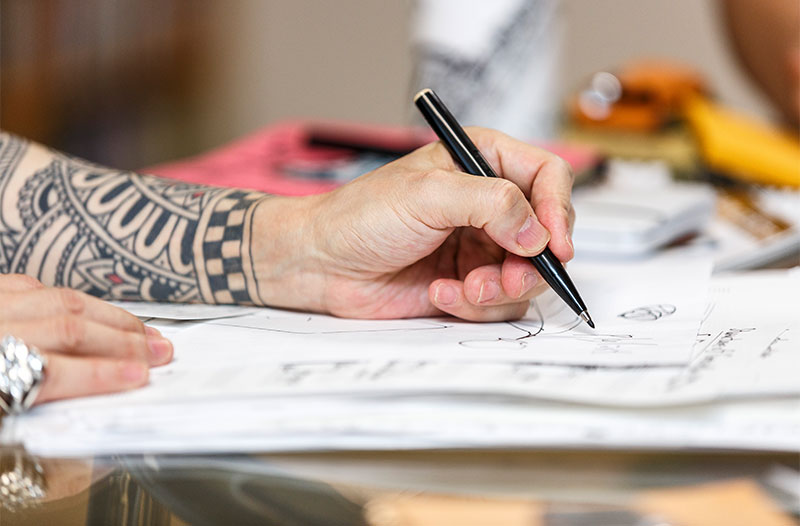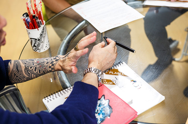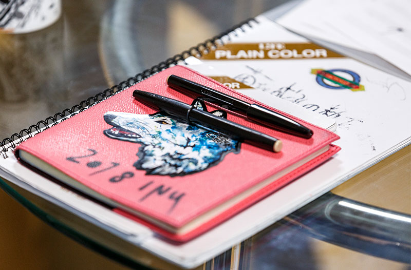一見するといつも同じ状態にありながら、常に循環がおこり、新しく更新されている。まるで身体の細胞のように新陳代謝を繰り返しながらクリエイションを支え続けるサインペンは、菊池さんにとって文房具のレベルを超えて、身体の一部になっているようです。