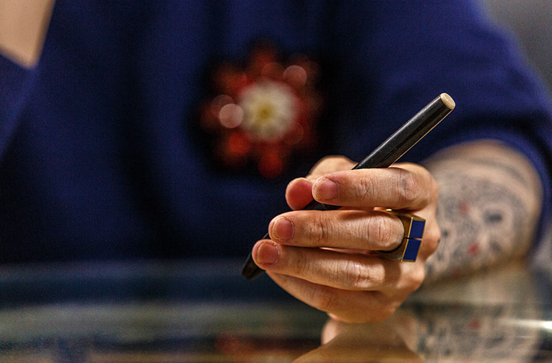 少年時代から好きなものは好き、嫌いなものは大っ嫌いと、非常にハッキリとした性格。そんな菊地さんが今もサインペンひと筋なのは、「なじみだから」といった単純な理由であるわけがありません。自身の成長とともに目の前に現れる他の筆記アイテムに触れたうえで、選び続けてきたのが、ぺんてるのサインペンだと言います。