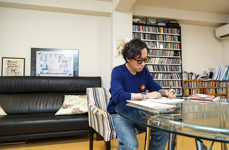 「歌詞なんかはパソコンで打ち込んでみたこともあるんだけど、まるでダメ。手書きとは言語感覚が違ってしまう感じがあって、やはり手じゃないと。言葉がどんどん湧いてくる時に、ペンを走らせるのが僕にはあっているんですね。」